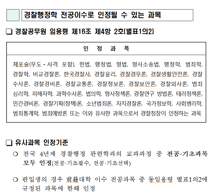 ※ 경찰행정학과 전공이수로 인정되는 과목