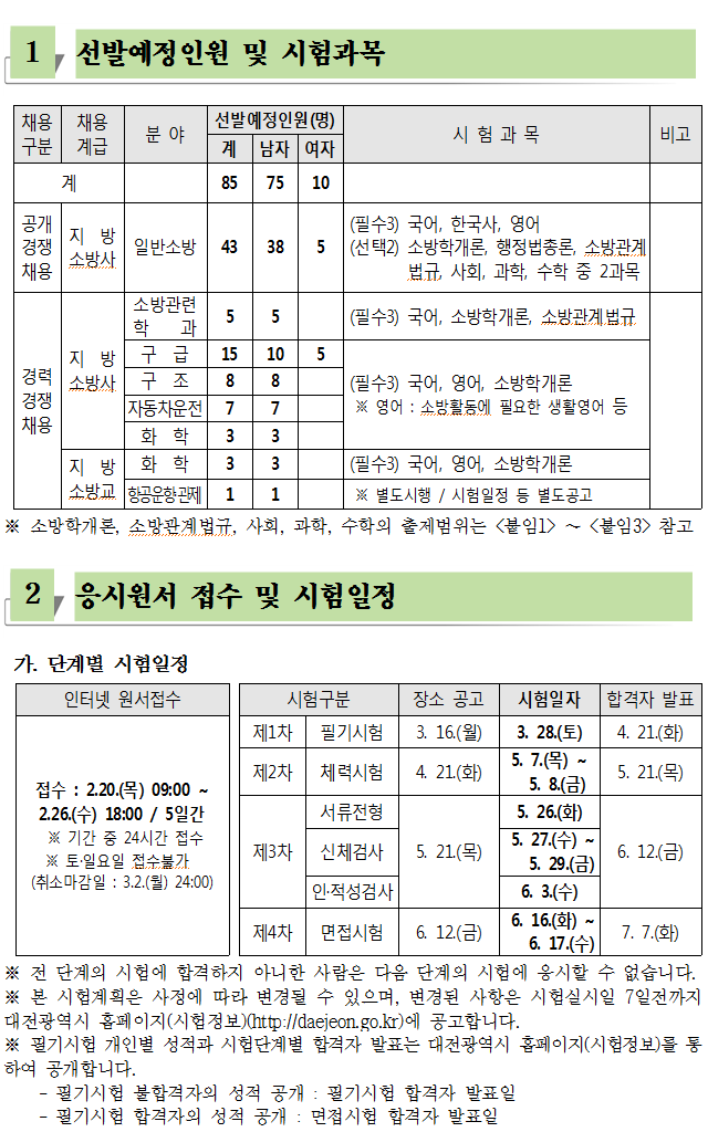 ▶ 2020 대전시 지방소방공무원 채용시험계획 공고