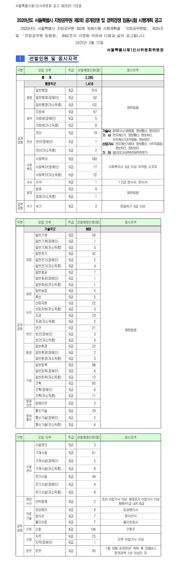 ▶ 2020 제2회 서울시 지방공무원 공개경쟁 및 경력경쟁 임용시험 시행계획 공고