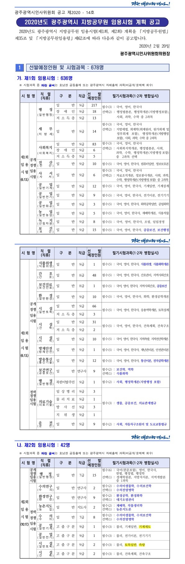 ▶ 2020 광주시 지방공무원 임용시험 계획 공고