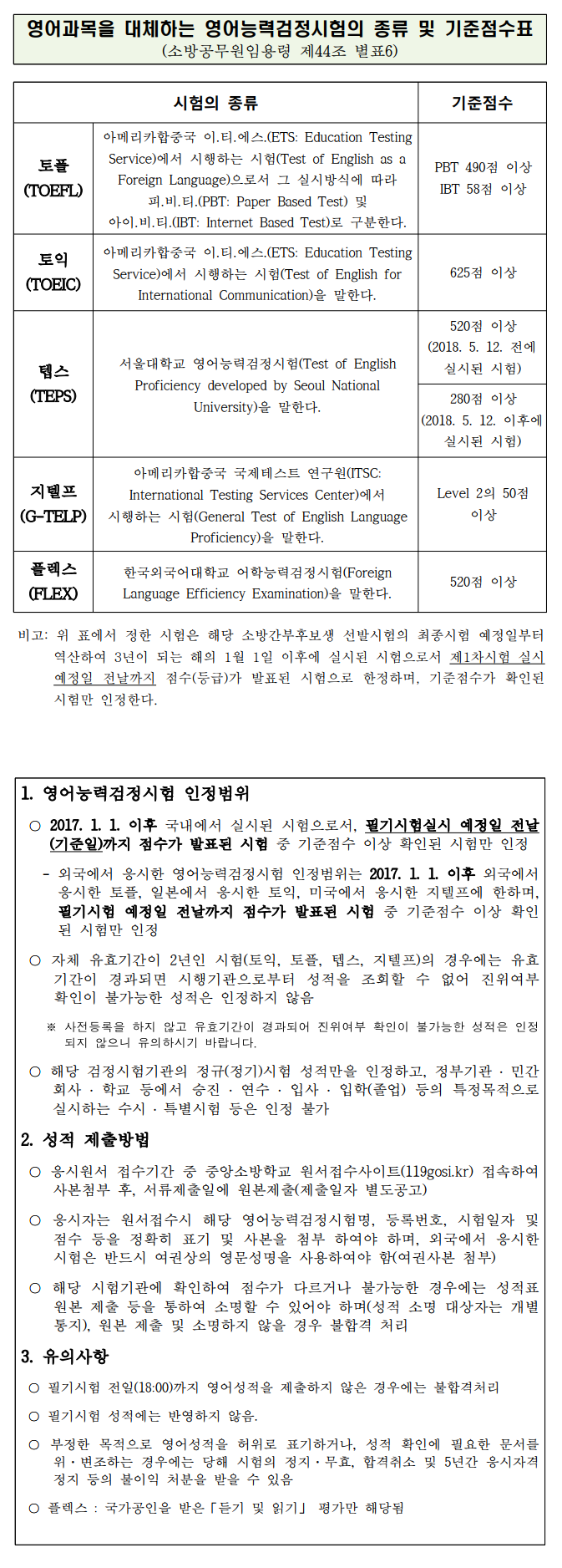※ 소방간부후보생 영어 시험 종류 및 점수