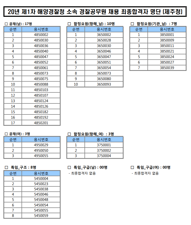 ★ 2020년 제1차 경찰공무원 채용 최종 합격자 알림 (제주청)