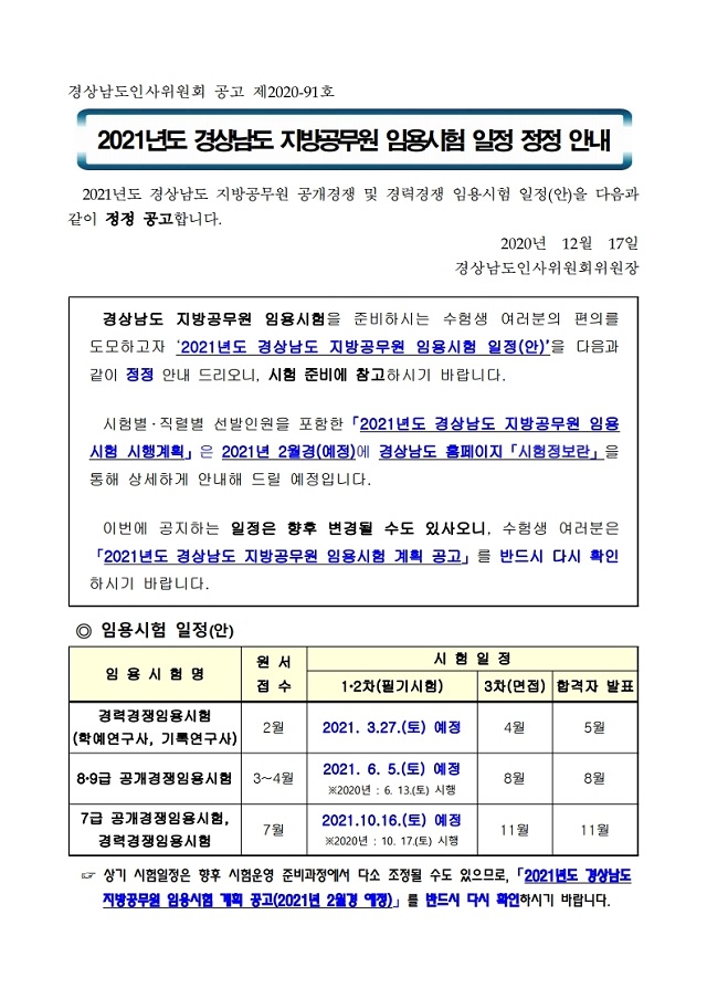 ▶ 2021년 경상남도 지방공무원 임용시험 일정 정정 안내