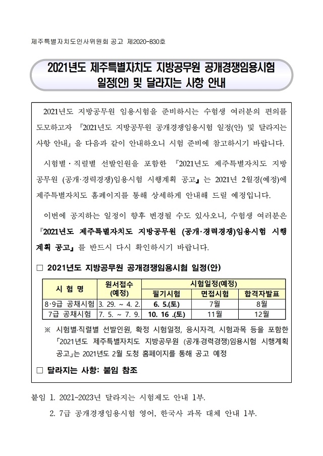 2021년도 제주특별자치도 지방공무원 공개경쟁임용시험 일정(안) 및 달라지는 사항 안내.pdf