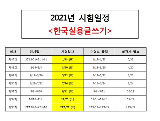 2021 한국실용글쓰기 시험일정