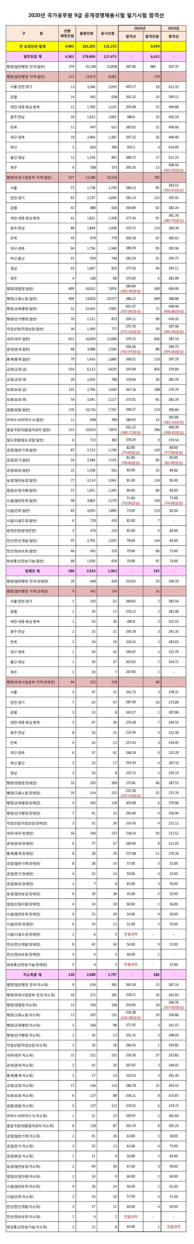 ▶ 2020 인사혁신처 국가공무원 9급 공개경쟁채용 필기시험 합격선