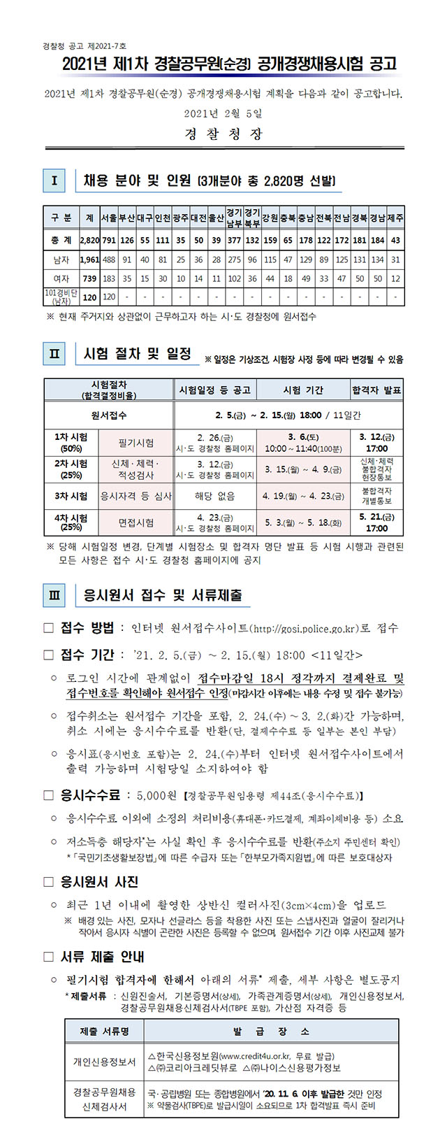 ▶ 2021년 제1차 경찰공무원(순경) 공개경쟁채용시험 공고