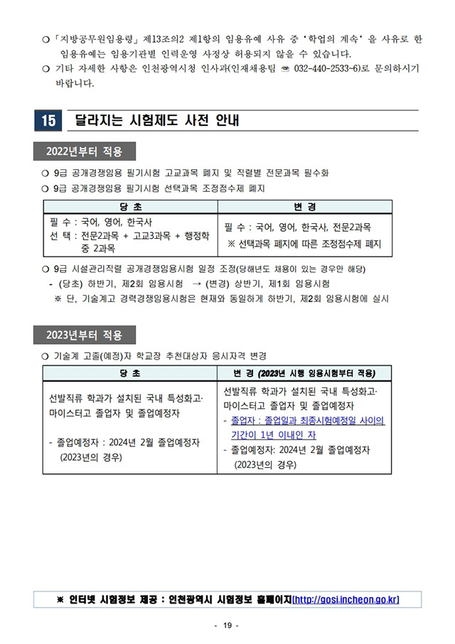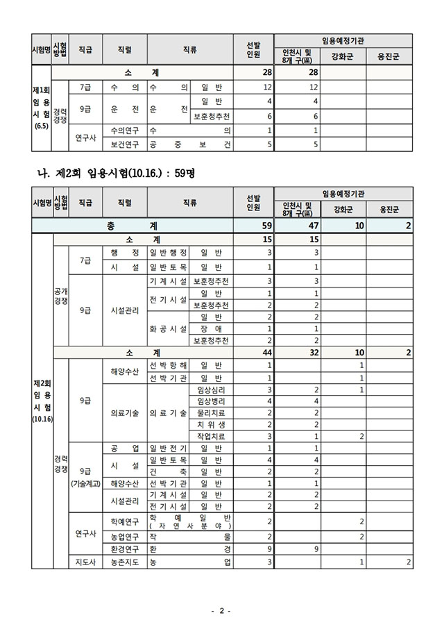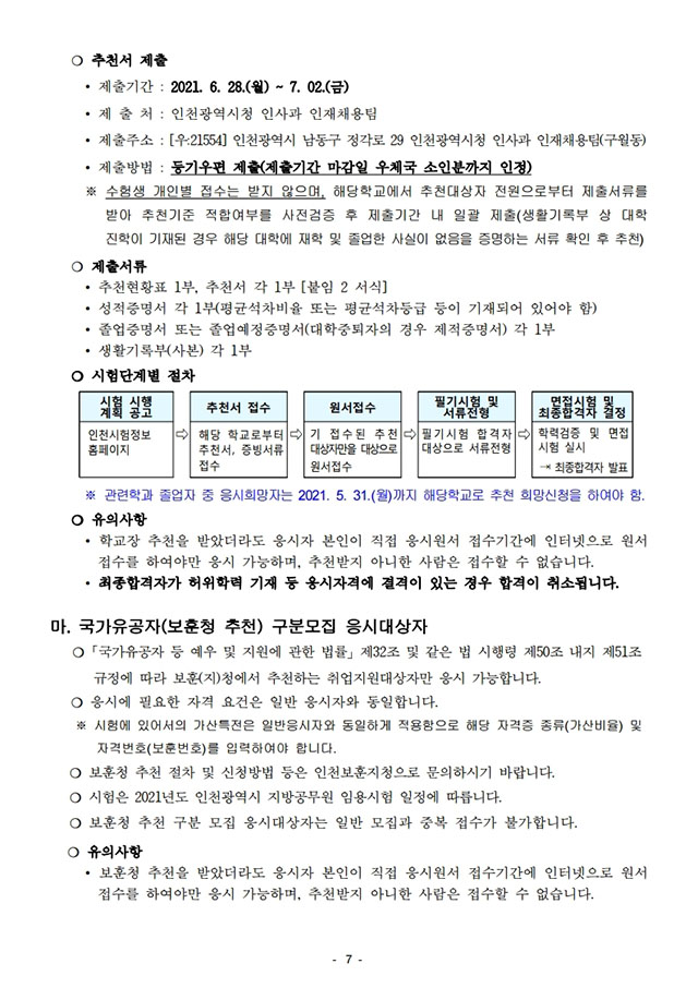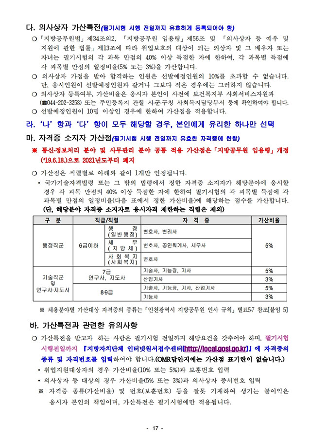 ▶ 2021년도 인천광역시 지방공무원 임용시험 시행계획 공고