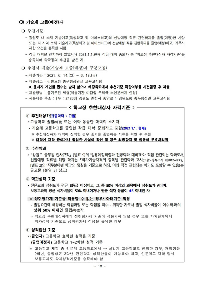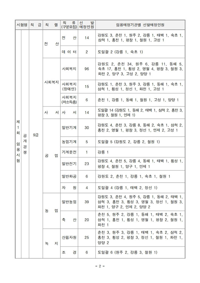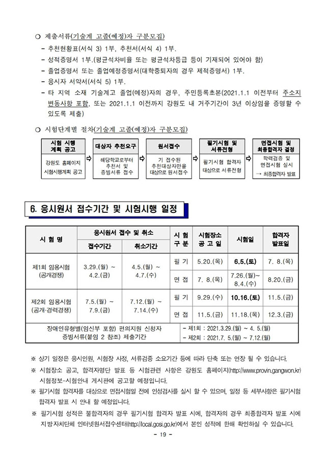▶ 2021년도 제1회 및 제2회 강원도 공무원 임용시험 시행계획 공고
