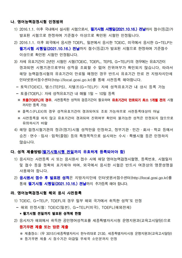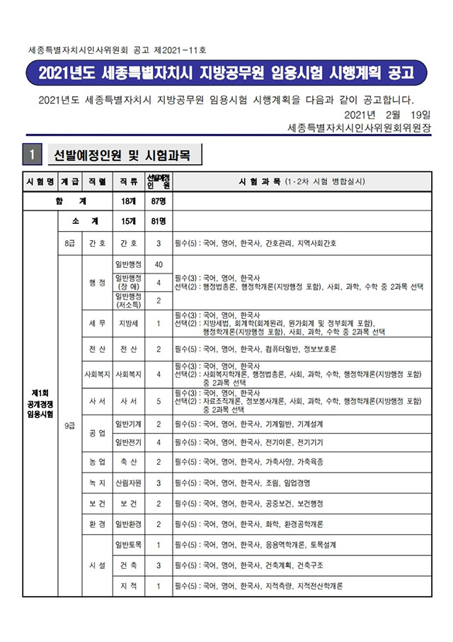 ▶ 2021년도 세종특별자치시 지방공무원 임용시험 시행계획 공고