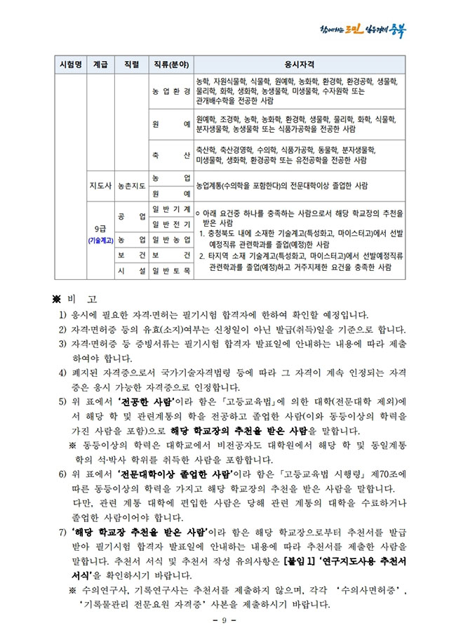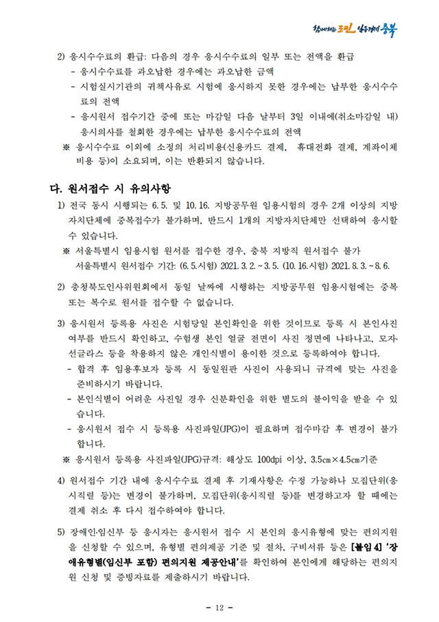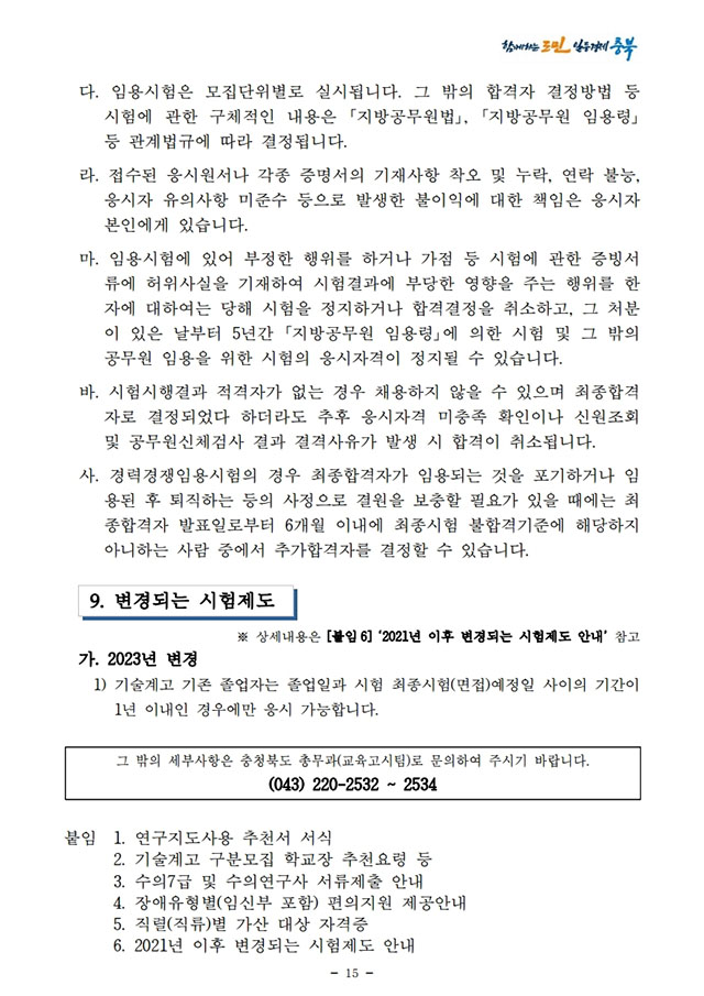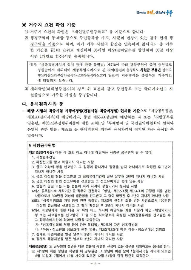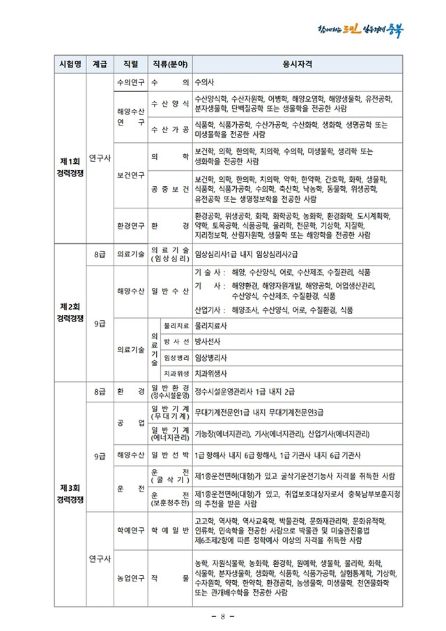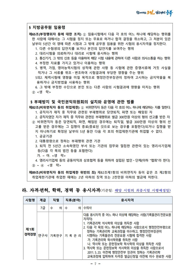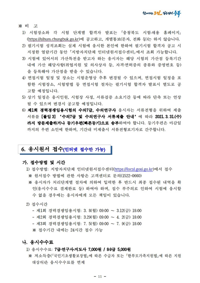 ▶ 2021년도 충청북도 지방공무원 경력경쟁임용시험 시행계획 공고