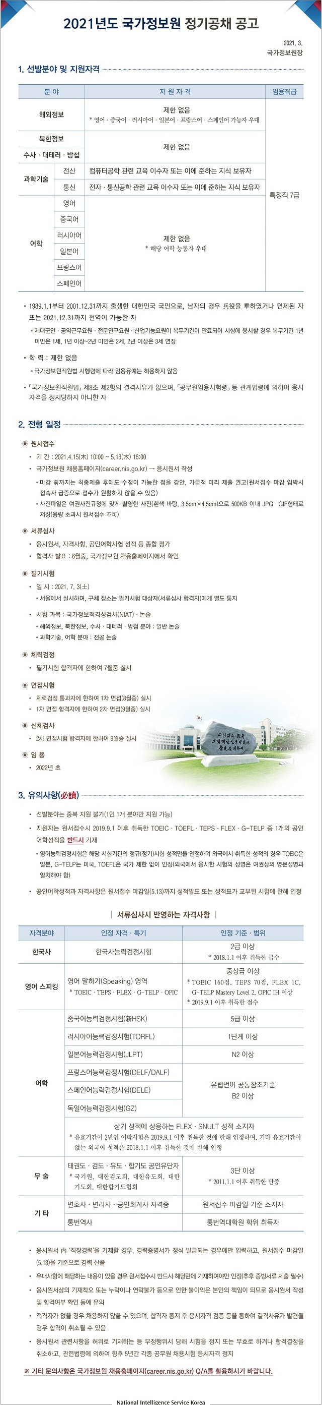 ▶ 2021년도 국가정보원 정기공채 채용 공고