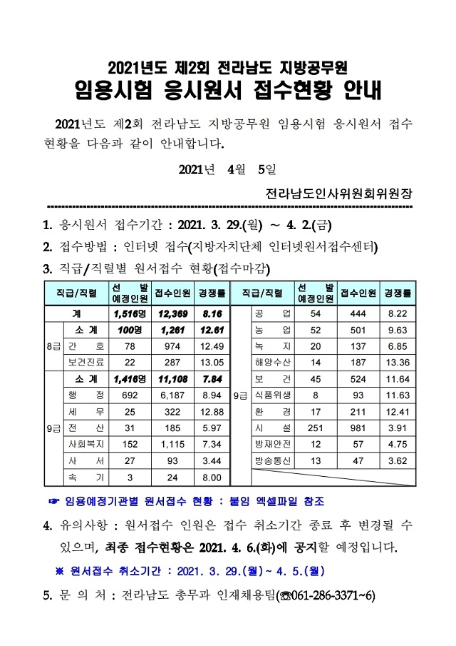 ▶ 2021년도 제2회 전라남도 지방공무원 임용시험 경쟁률(잠정)