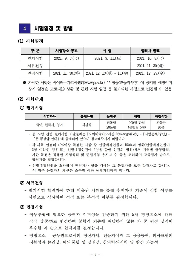 ▶ 2021년 지역인재 9급 수습직원 선발시험 시행계획 공고