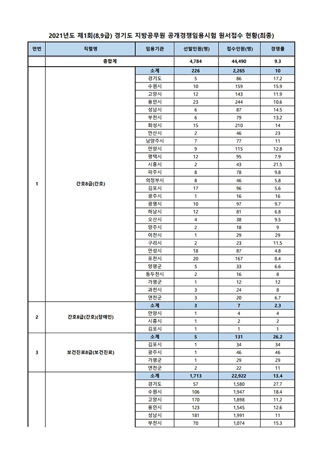 ▶ 2021년도 제1회 경기도 지방공무원 임용시험 경쟁률