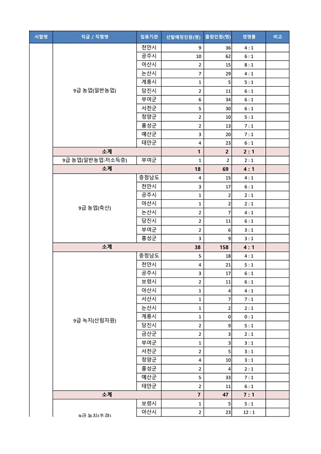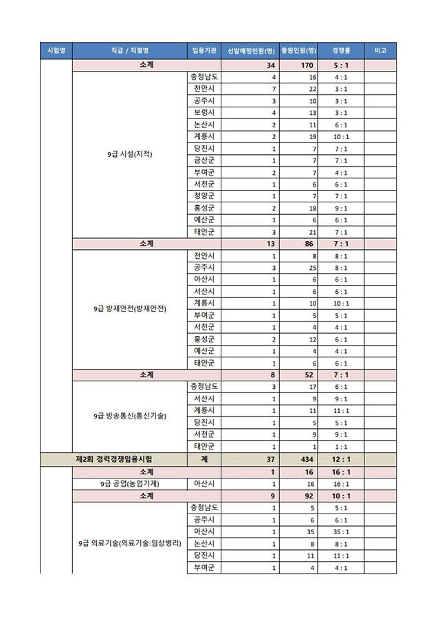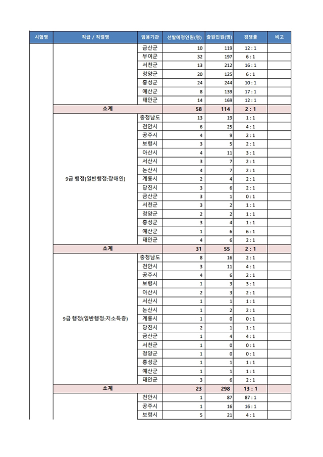 ▶ 2021년도 제1회 충청남도 지방공무원 임용시험 경쟁률