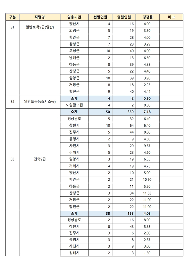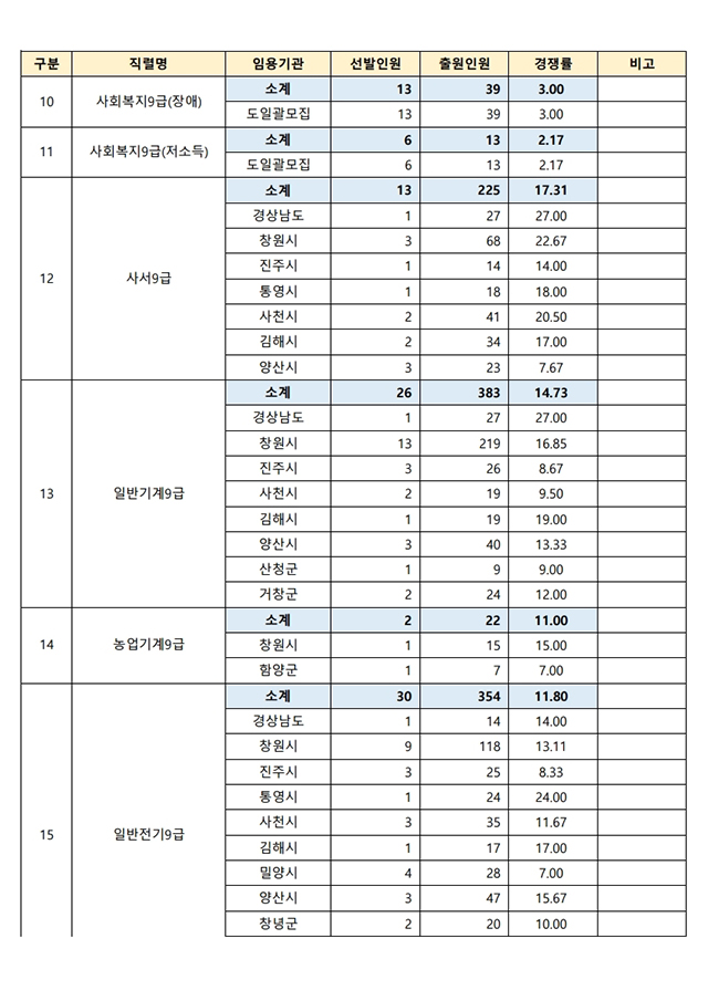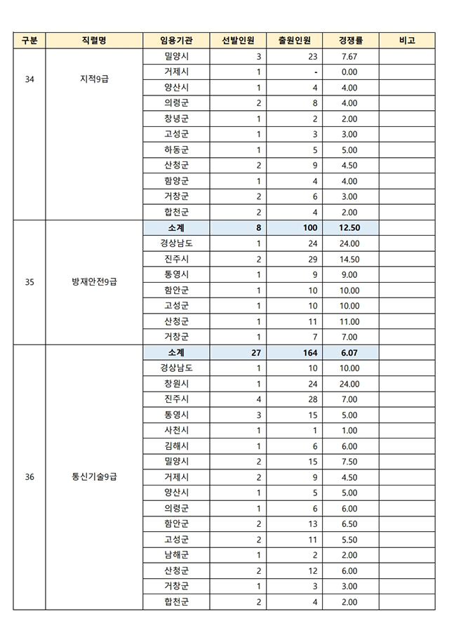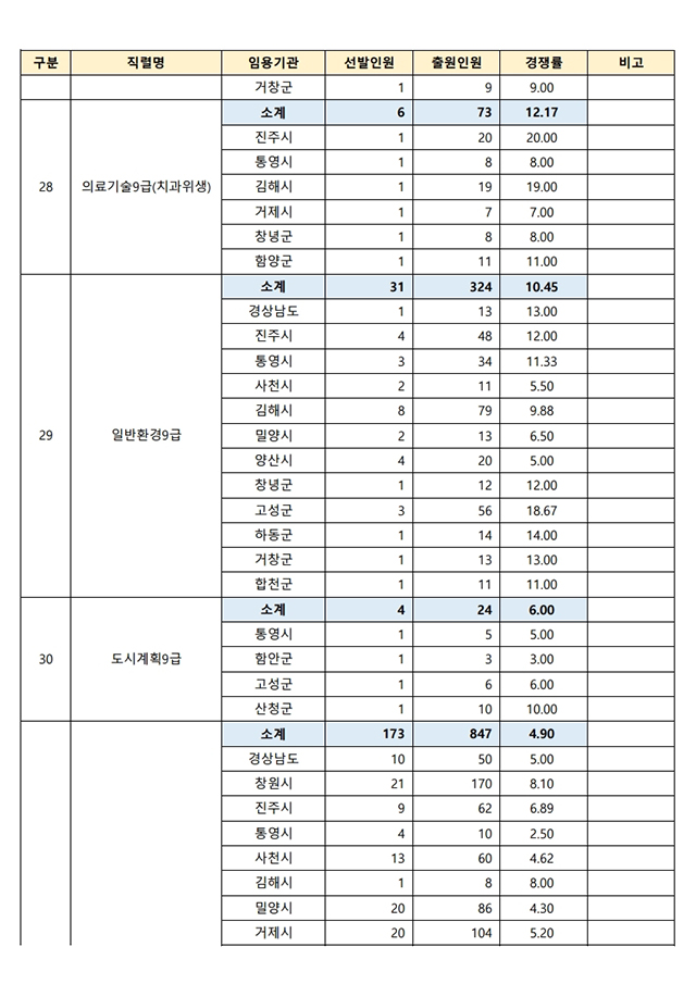 ▶ 2021년도 제3회 경상남도 지방공무원 임용시험 경쟁률