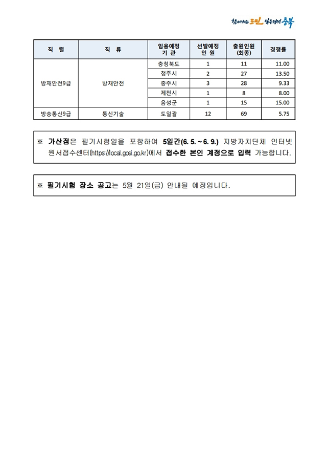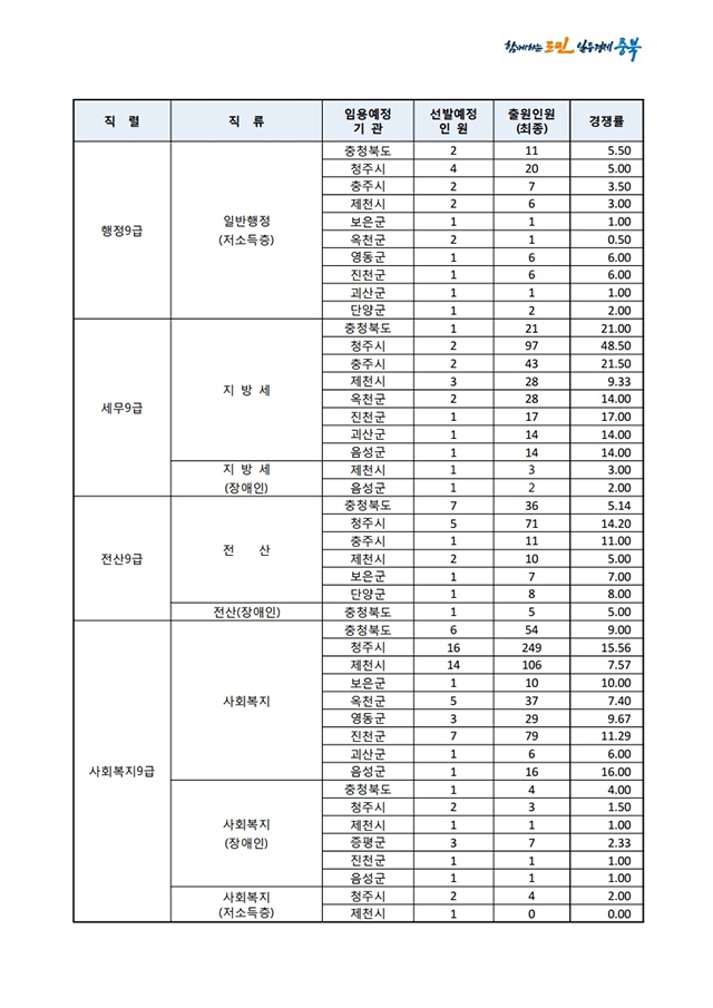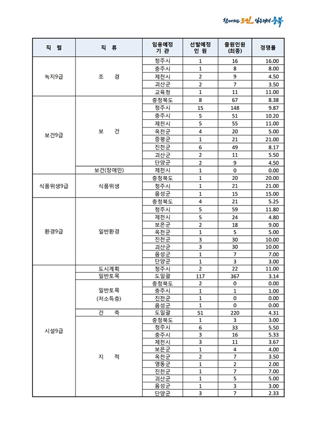 ▶ 2021년도 제1회 충청북도 지방공무원 임용시험 경쟁률