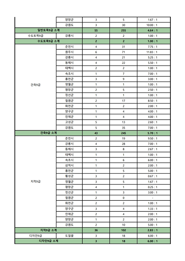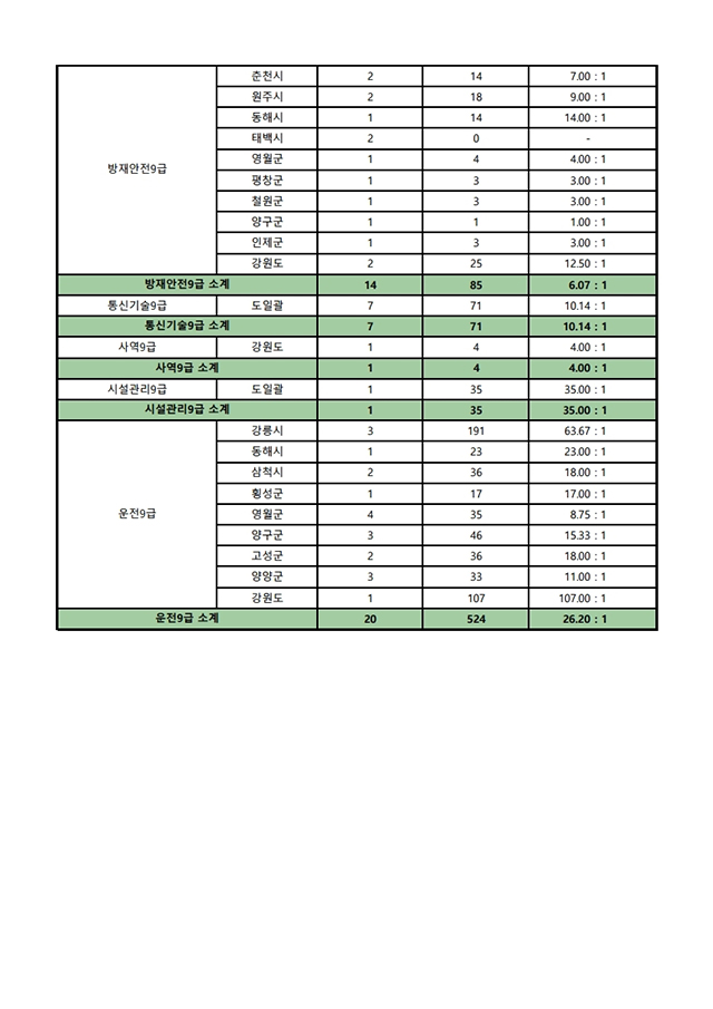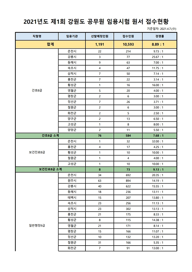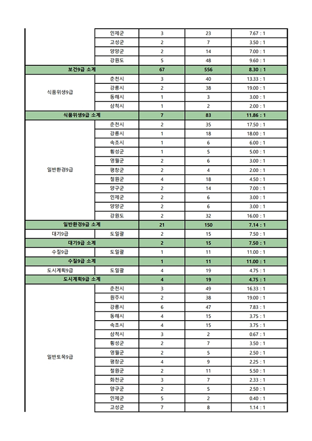 ▶ 2021년도 제1회 강원도 지방공무원 임용시험 경쟁률(최종)