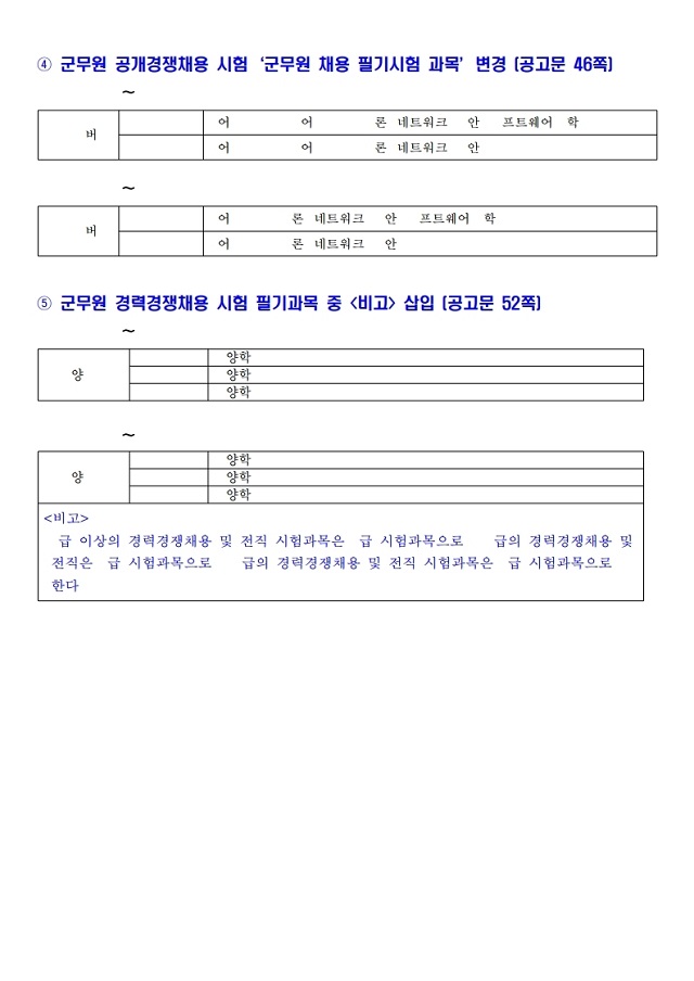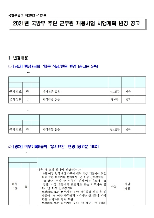 ▶ 2021년 국방부 주관 군무원 채용시험 시행계획 변경 공고