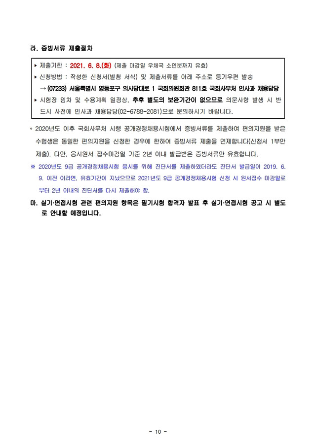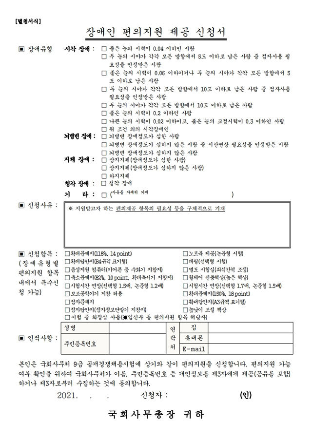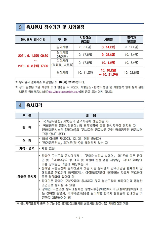▶ 2021년도 국회사무처 9급 공개경쟁채용시험 공고
