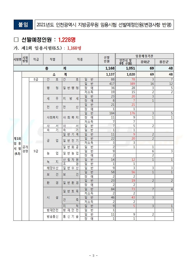 (참고자료-공고문 전문)2021년도 인천광역시 지방공무원 임용시험 시행계획(선발인원 변경 반영).hwp