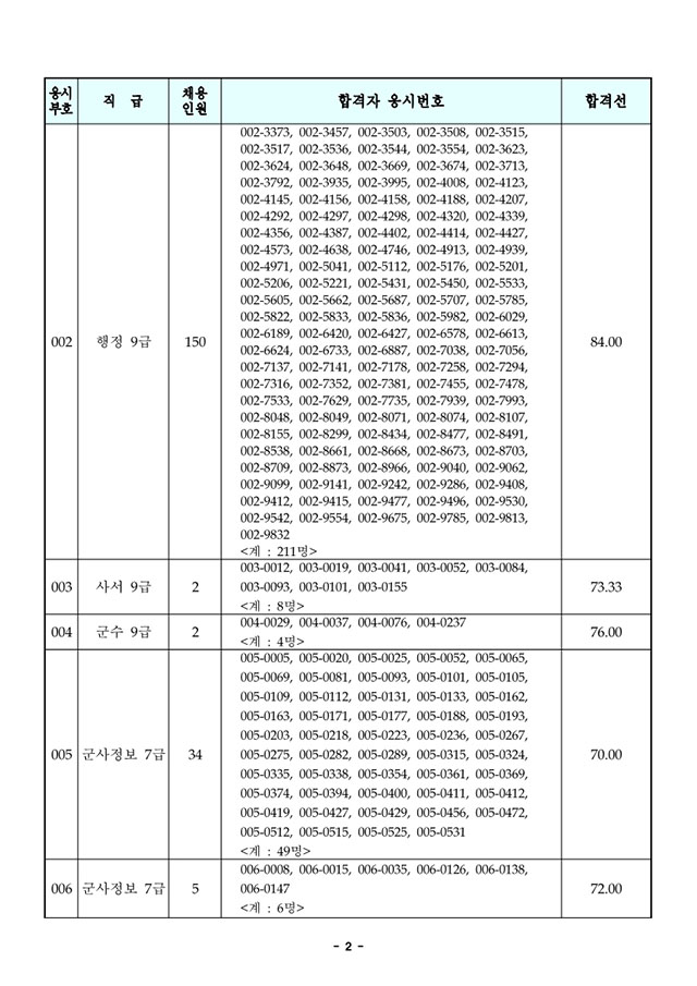 2021년도 국방부 주관 일반군무원 채용 필기시험 합격선 및 합격자 공고.pdf