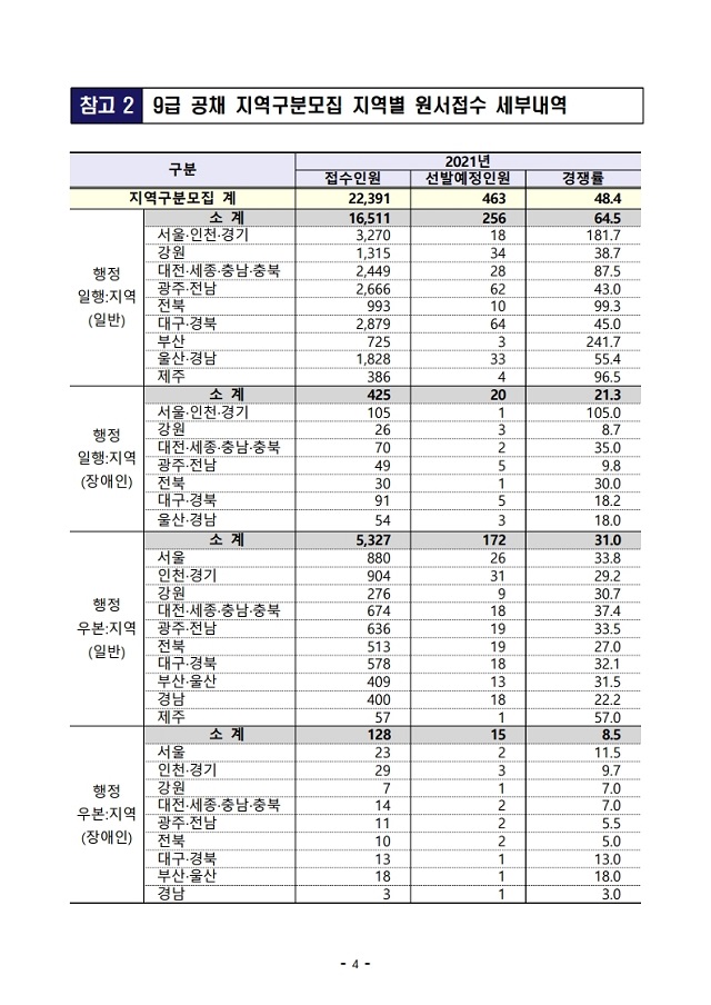 ▶ 2021 인사혁신처 국가공무원 9급 공개경쟁채용시험 경쟁률