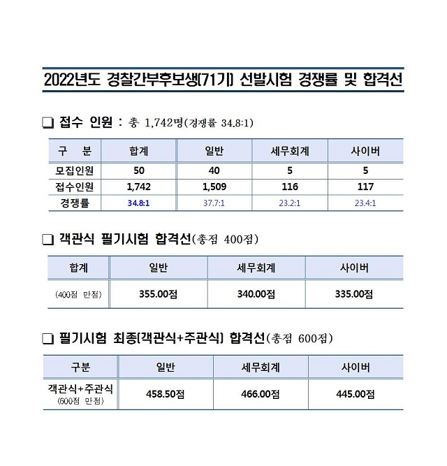 ▶ 2022년도 경찰간부후보생(71기) 선발시험 경쟁률 및 합격선