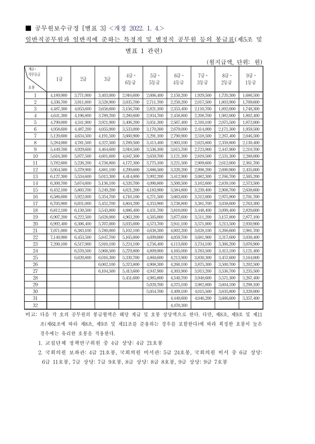 ※ 2022년 공무원 봉급표 (일반직) ※