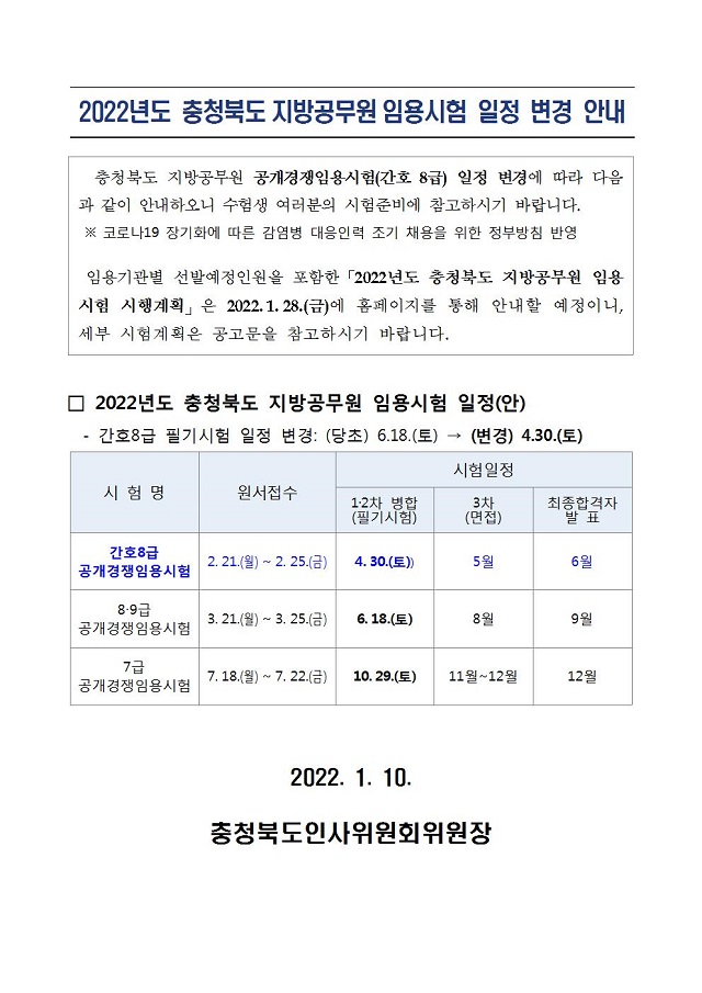 2022년도 충청북도지방공무원임용시험 일정(안) 변경 안내 (간호8급).pdf