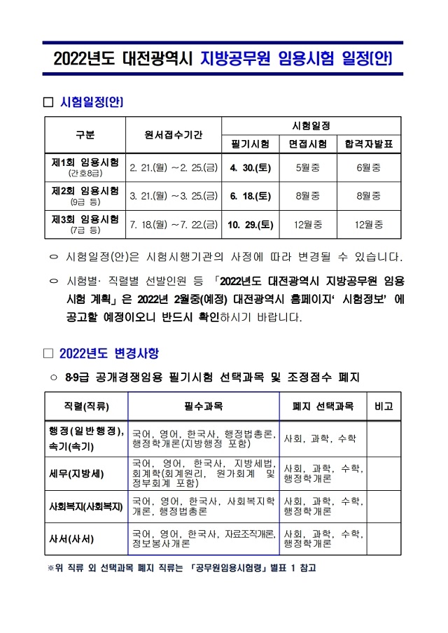 ▶ 2022년도 대전광역시 지방공무원 임용시험 일정 변경 안내