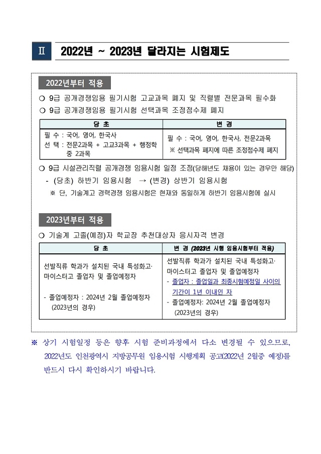 ▶ 2022년도 인천광역시 지방공무원 임용시험 일정(안) 안내