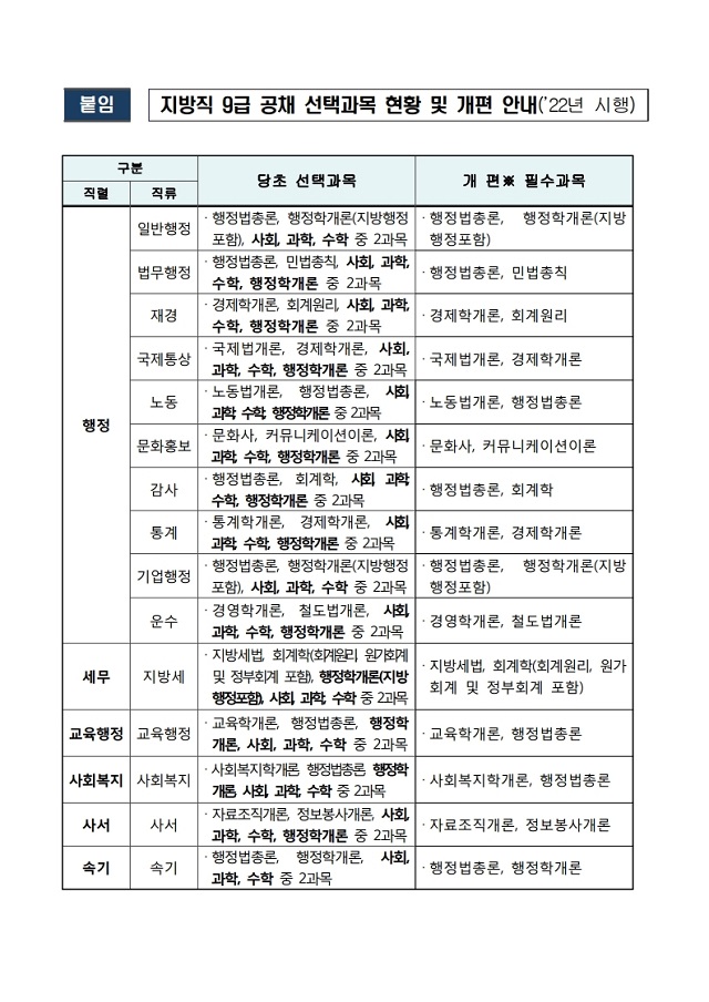 (붙임) 지방직 9급 공채 선택과목 현황 및 개편 안내.pdf