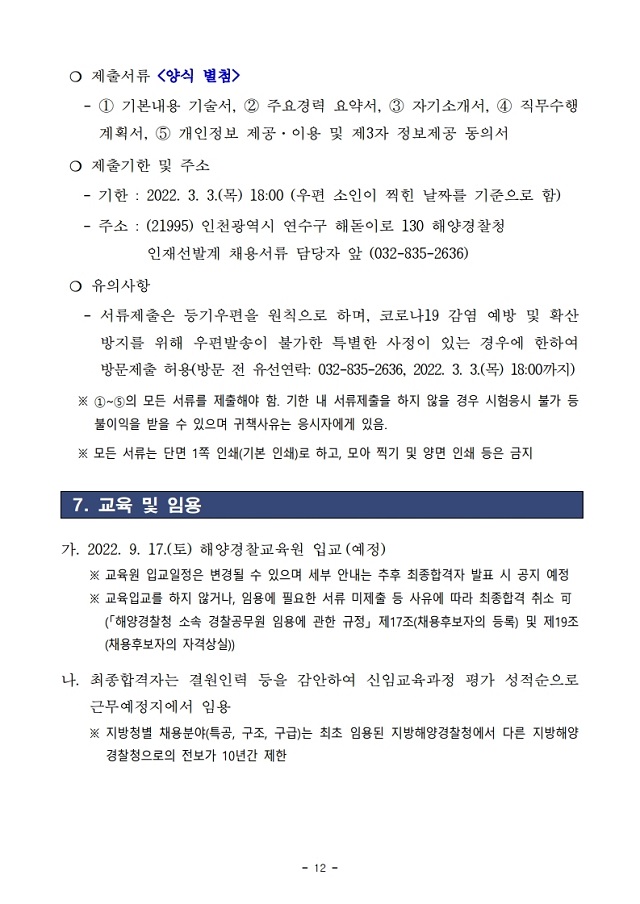 ▶ 2022년 제1차 해양경찰공무원 경력경쟁채용시험 공고