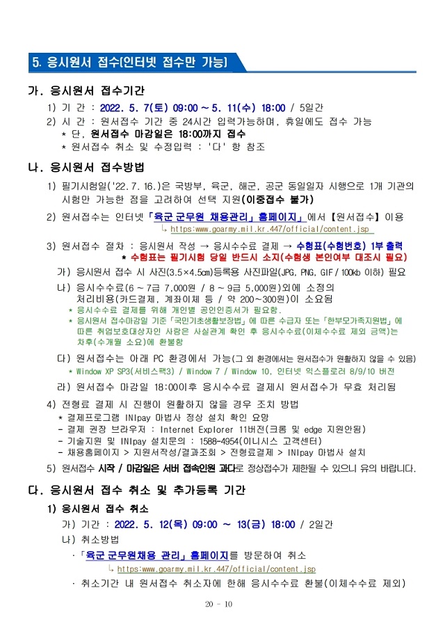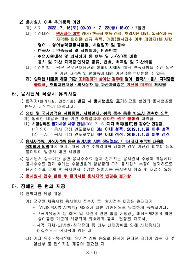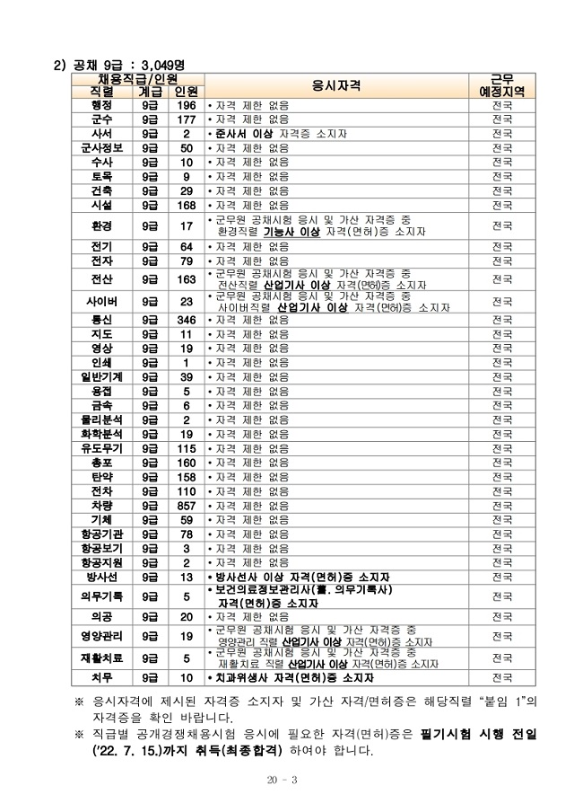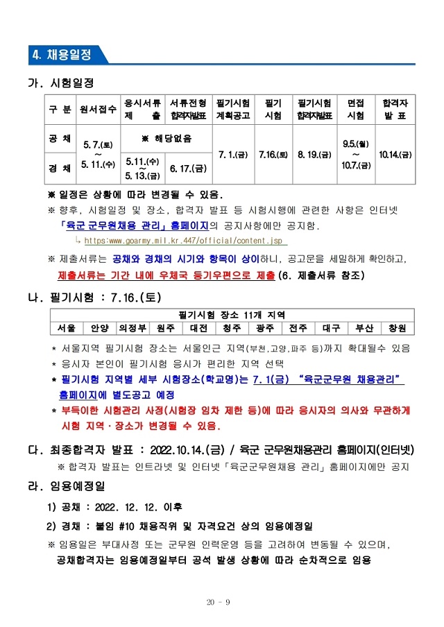 ▶ 2022년도 육군 일반군무원 채용시험 계획 공고