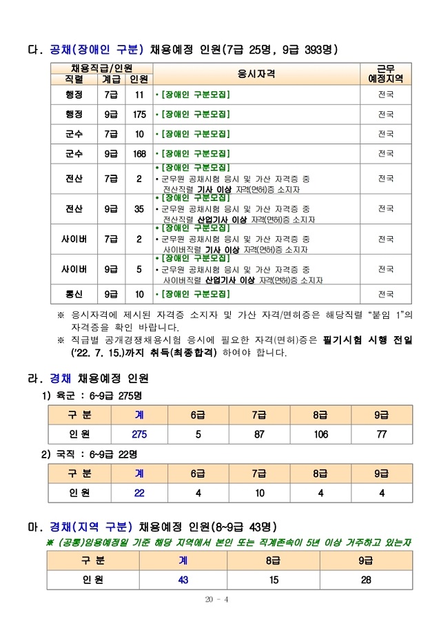 2022년 육군 일반군무원(공채 및 경채) 채용계획 공고.pdf