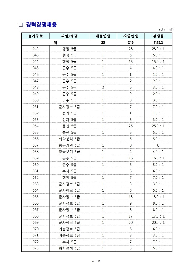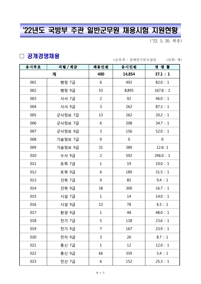 ▶ 2022년 국방부주관 일반군무원 (공채, 경채) 경쟁률