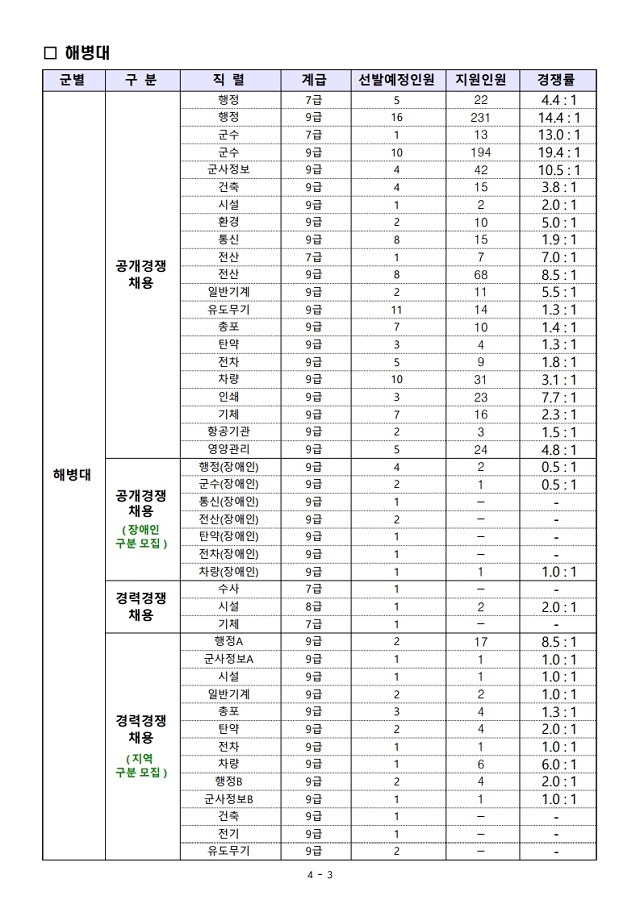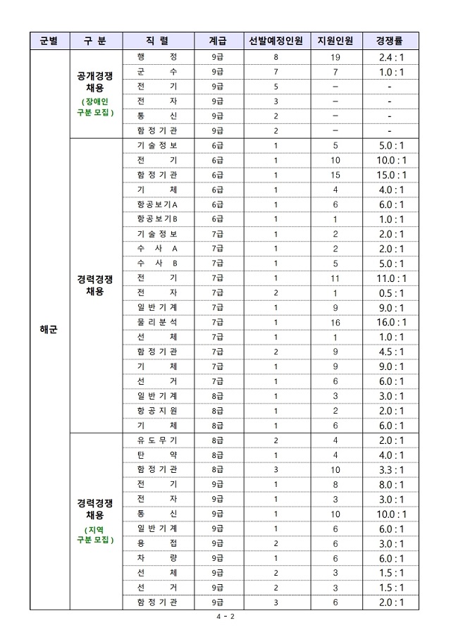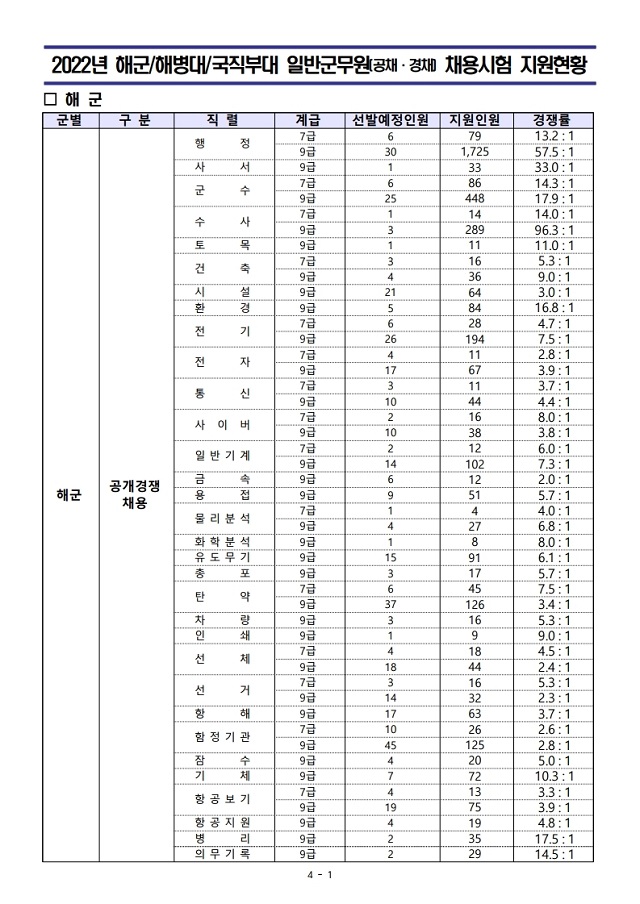 ▶ 2022년 해군, 해병대, 국직부대(위임 직렬) 일반군무원 (공채, 경채) 경쟁률