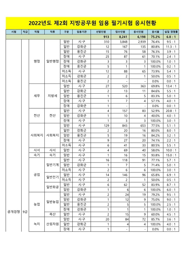 ▶ 2022년도 제2회 인천광역시 지방공무원 임용시험 경쟁률