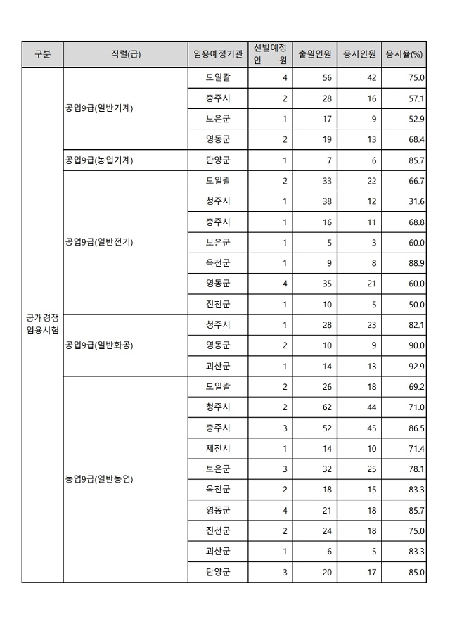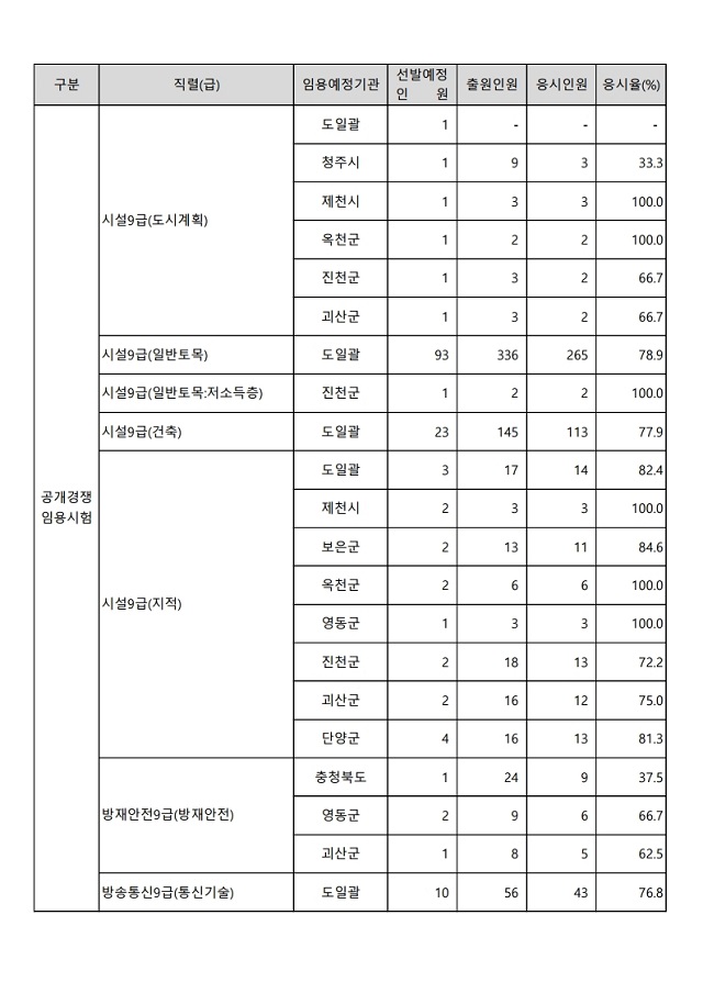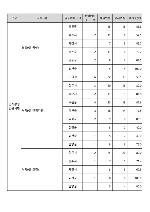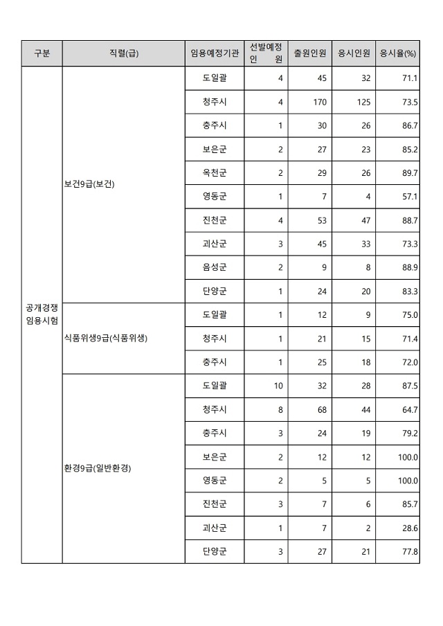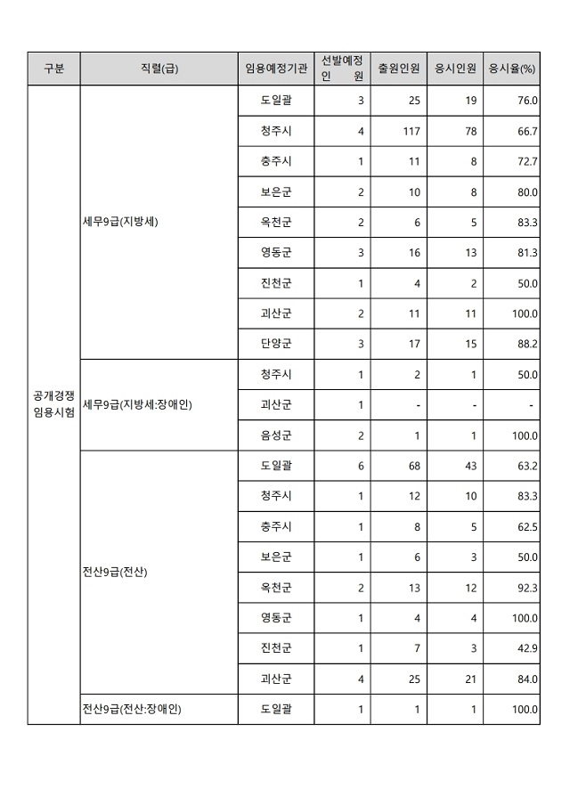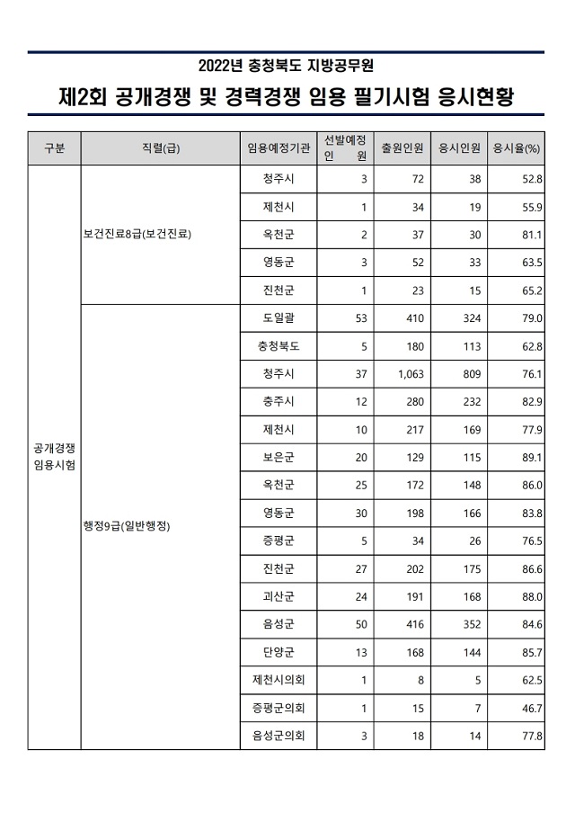 ▶ 2022년도 제2회 충청북도 지방공무원 임용시험 경쟁률