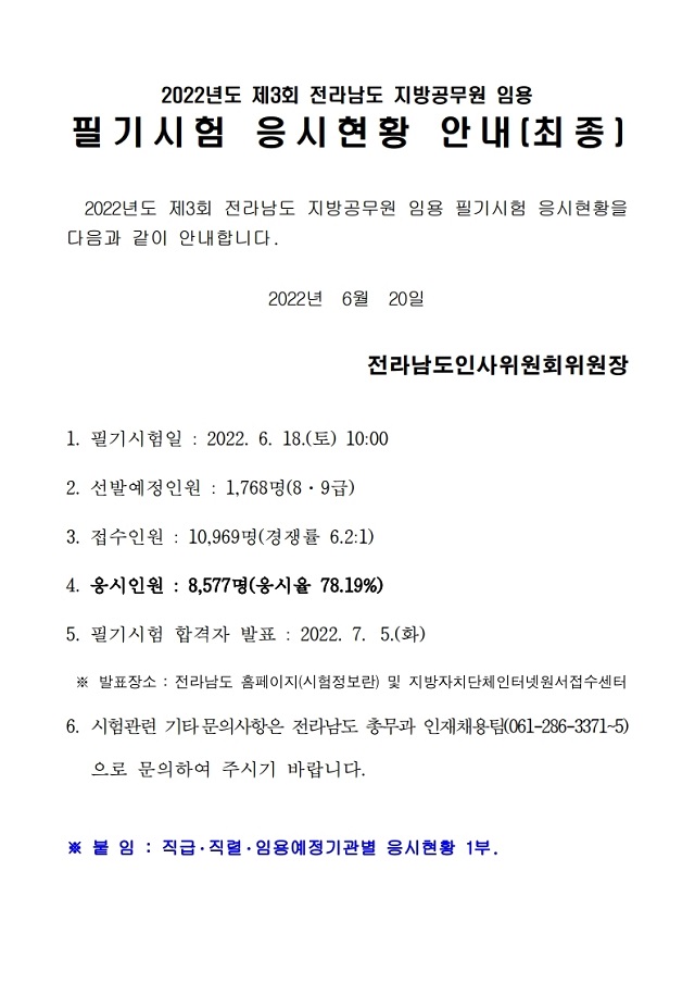 ▶ 2022년도 제3회 전라남도 지방공무원 임용시험 경쟁률