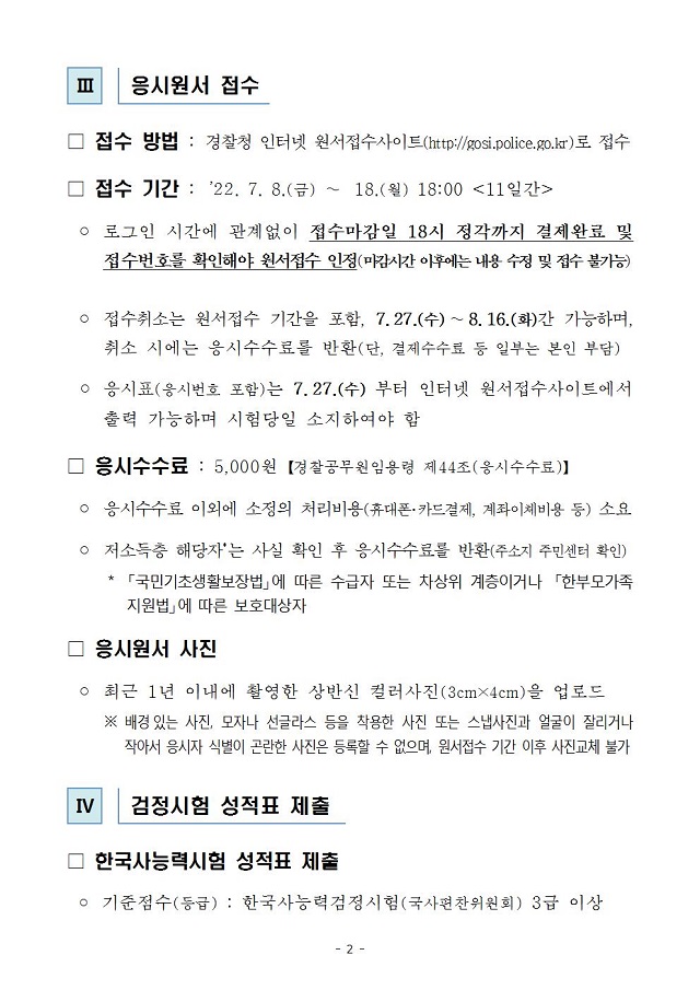 ▶ 2022년 제2차 경찰공무원(순경) 공개경쟁채용시험 공고