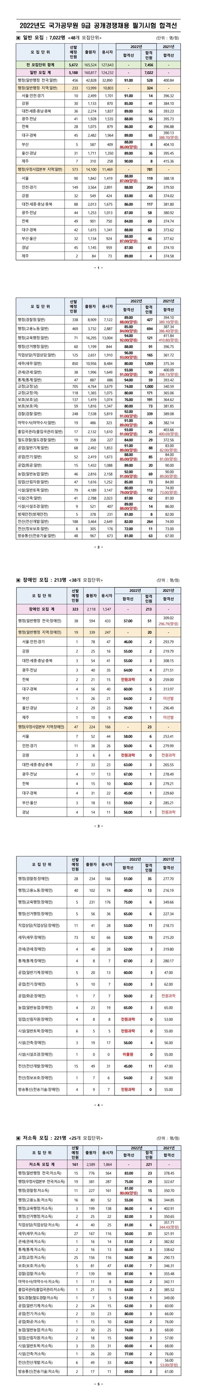 2022년도 국가공무원 9급 공개경쟁채용 필기시험 합격선(pdf).pdf