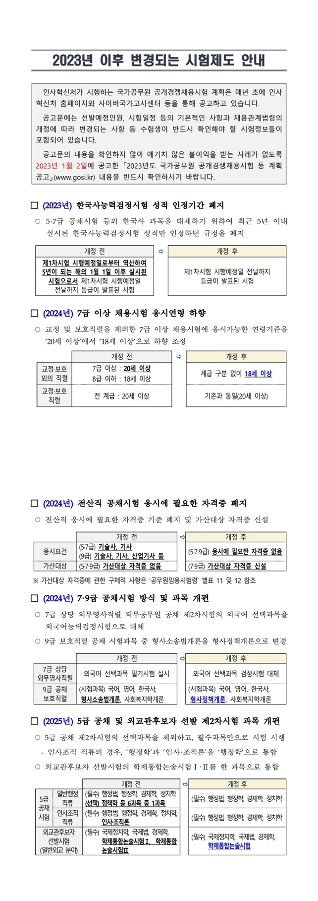 ▶ 2023년 이후 인사혁신처 국가공무원 시험제도 변경 안내
