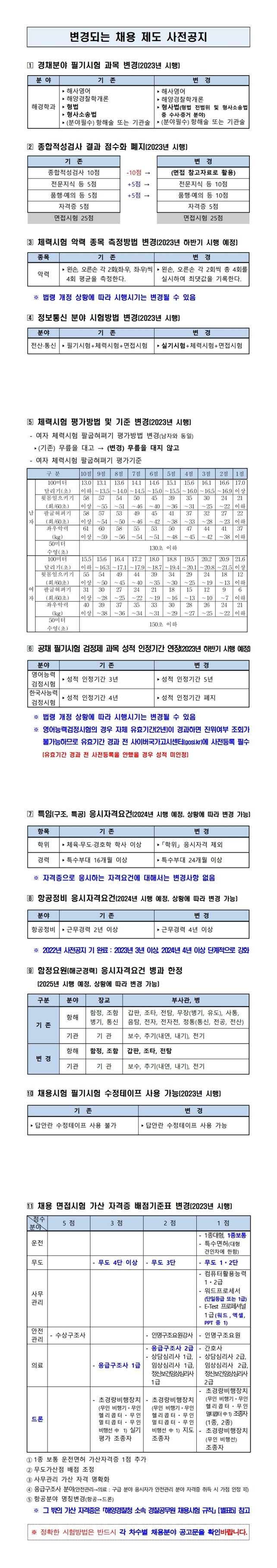 ▶ 해양경찰청 소속 공무원 변경되는 채용 제도 사전공지