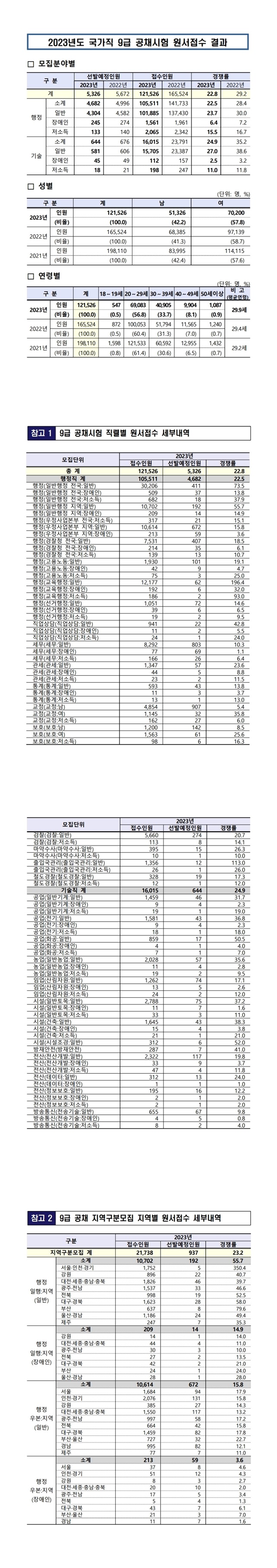 ▶ 2023 인사혁신처 국가공무원 9급 공개경쟁채용시험 경쟁률