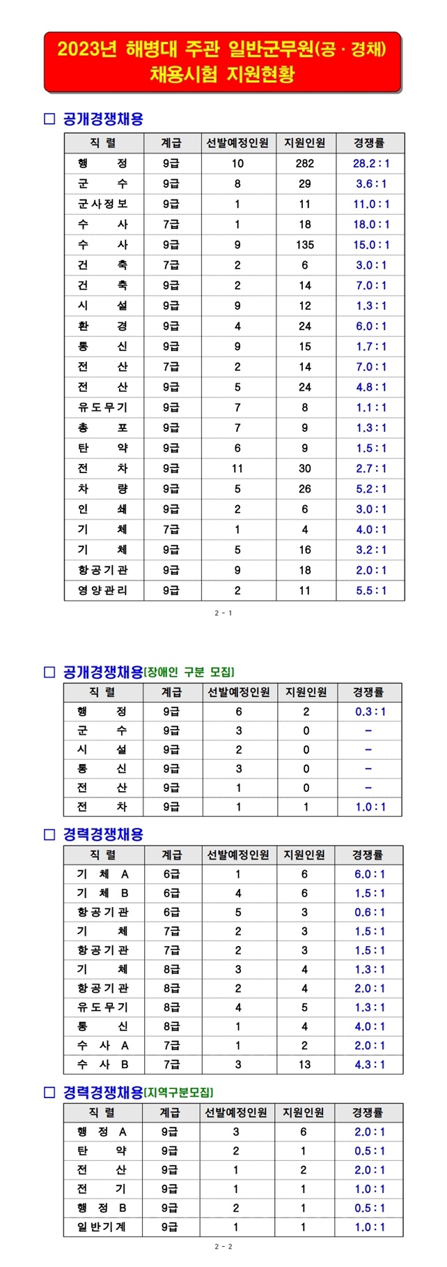 ▶ 2023년 해병대 일반군무원 (공채, 경채) 경쟁률