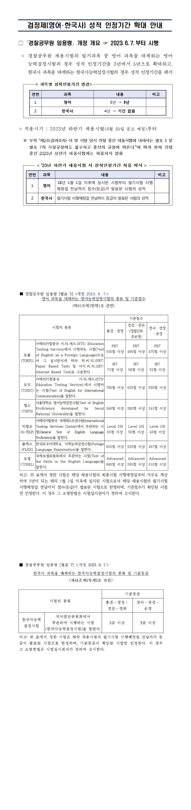 ※ 검정제(영어·한국사) 성적 인정기간 확대 안내