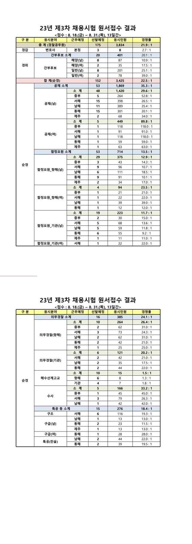 ▶ 2023년 제3차 해양경찰청 경찰공무원 채용시험 경쟁률